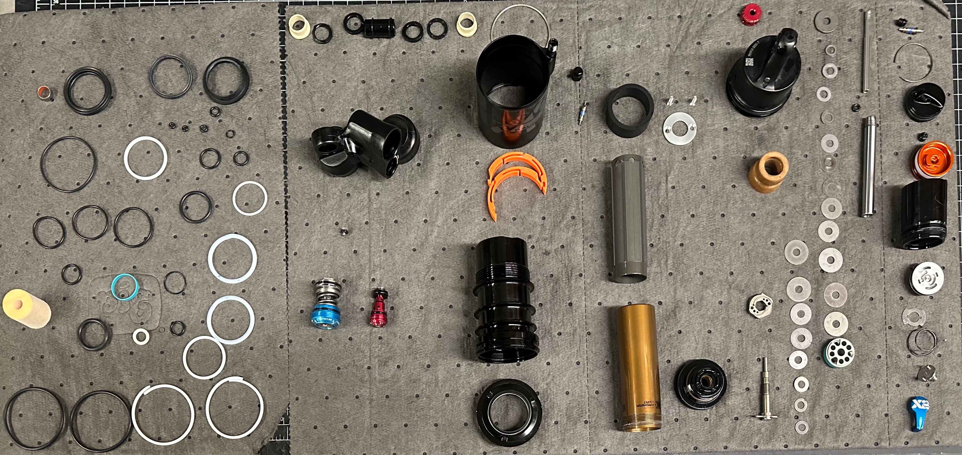 Full tear down of the shock, complete cleaning, all new damper oil and seals, vacuum bleed and air can service. $125 plus parts.