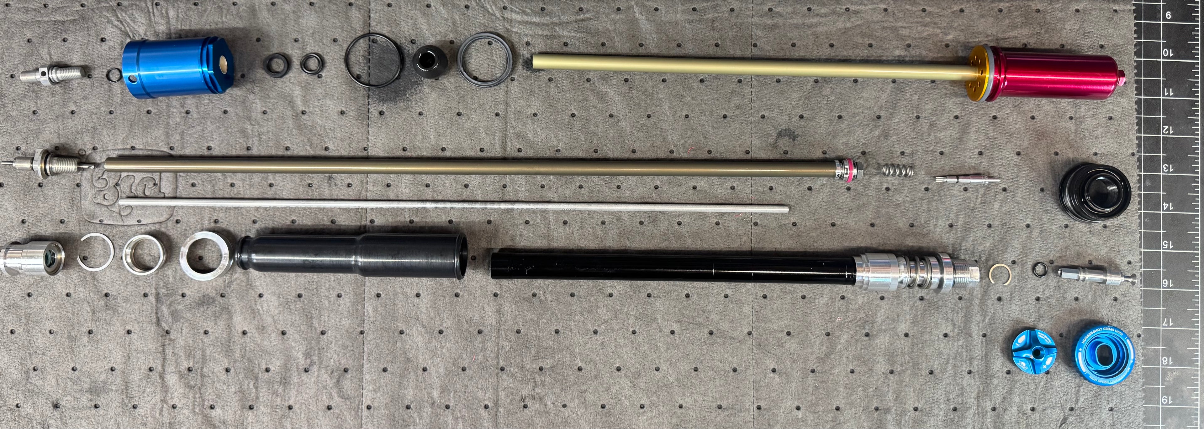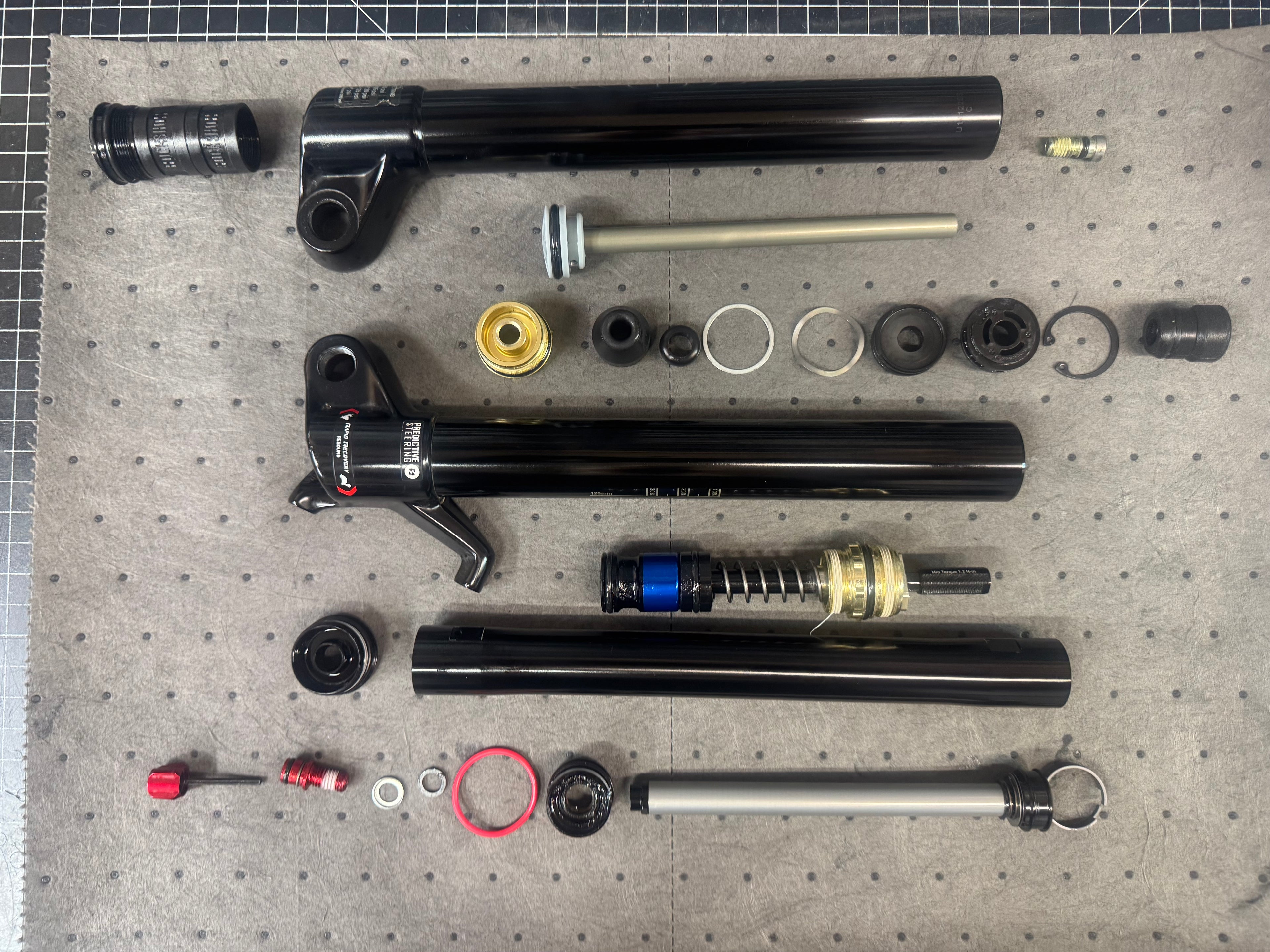 Full rebuild of the fork. Includes all new seals in the air spring, all new damper seals, fresh oil, vacuum bleed to reduce stiction and optimize feel. $150 plus parts.