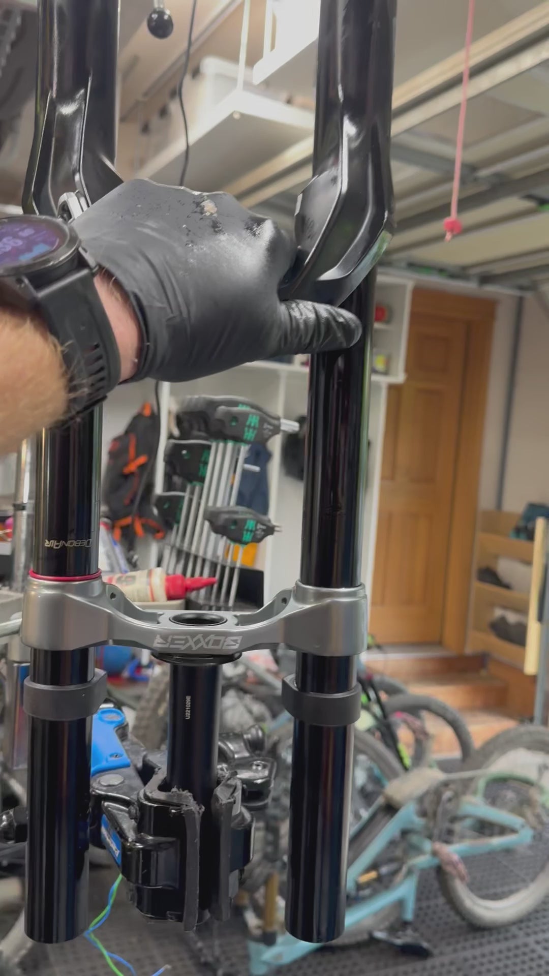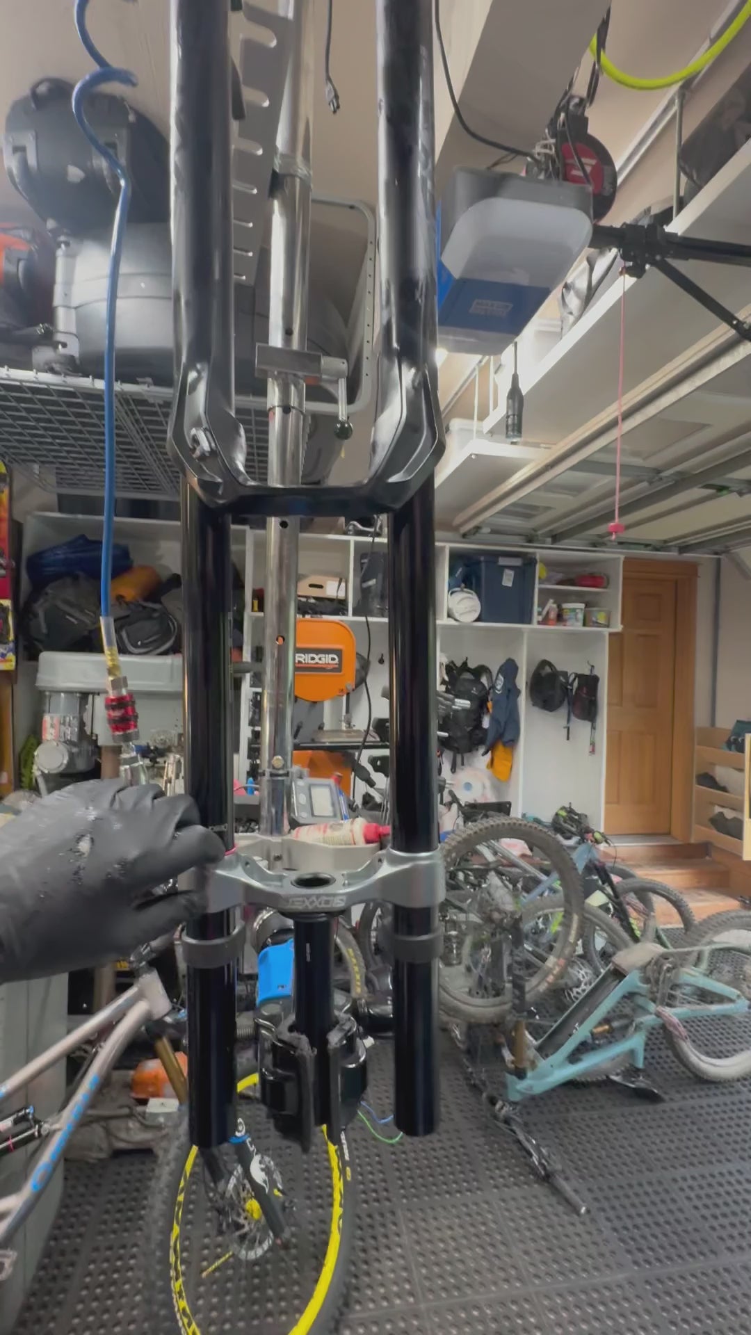 Fork lowers should be serviced every 50 hours according to Fox and RockShox. A better rule of thumb, though, is to service them as soon as you stop seeing grease rings on your stanchions—that’s a clear sign your dust wipers are no longer being lubricated.